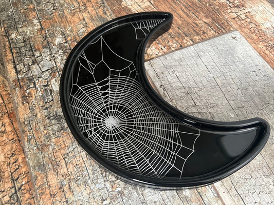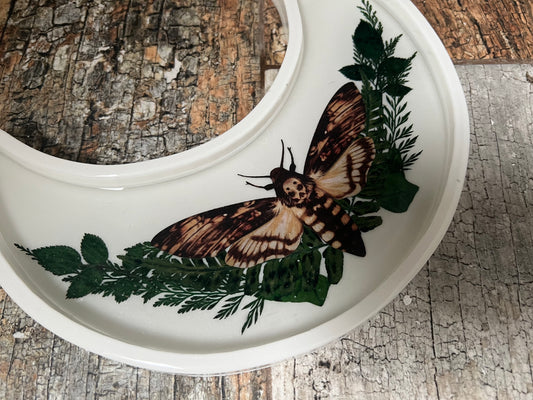 Crescent Moon Shaped Tray - White with Deathhead Hawk Moth